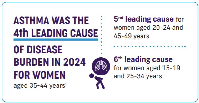 In childhood, asthma is the leading cause of disease burden in girls aged 1-9 years and the second leading cause of disease burden for older girls and adolescents (aged 10-14 years)5. This burden continues to shape health, schooling and daily life from and throughout adolescence.