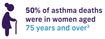 Asthma outcomes are worse for older women in Australia, who experience some of the highest rates of asthma illness and death. Women aged 75 and over account for nearly half of all asthma deaths3. Many of these deaths can be prevented with proper asthma care 8.