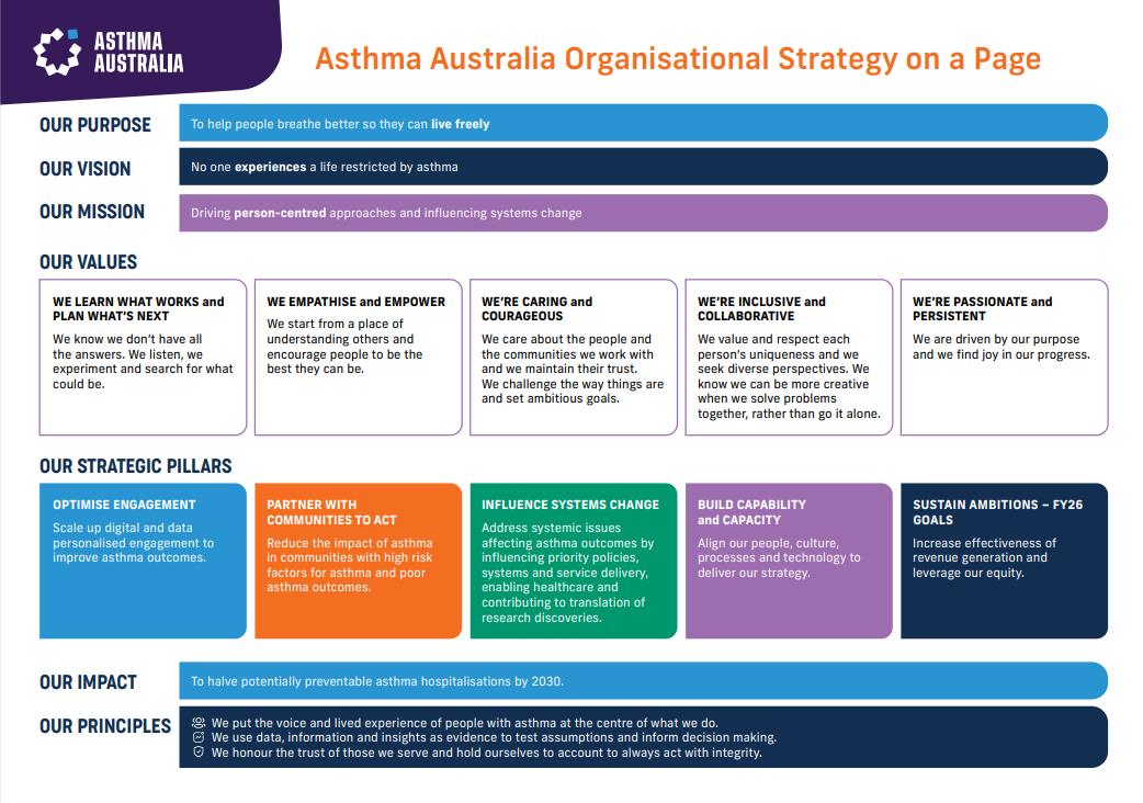 You can download a copy of Asthma Australia’s Organisational Strategy on a Page here.