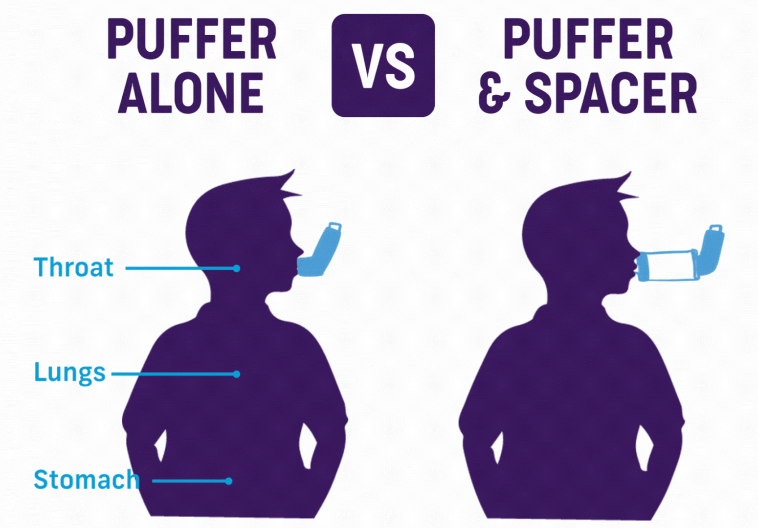 The most common type of inhaler for kids is a puffer, which should always be used with a spacer. A spacer helps the medicine reach your child’s lungs where it is needed instead of getting stuck on the back of their throat or in their mouth.